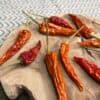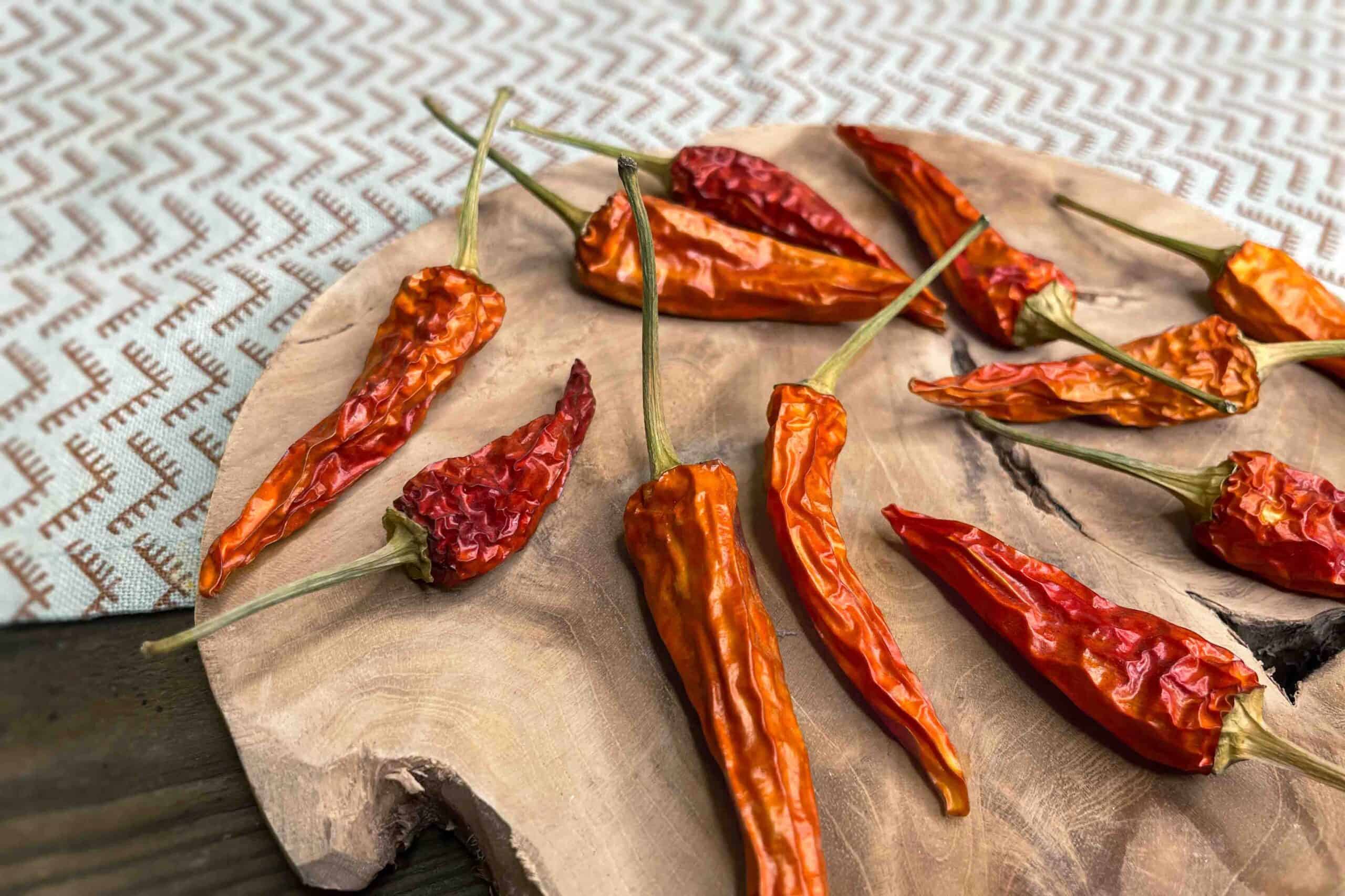 De gedroogde pepers zijn lang houdbaar, maar bewaar ze voor optimale smaak en pittigheid niet langer dan een jaar. Klik hier voor meer informatie over het bewaren en invriezen van gedroogde chilipepers.