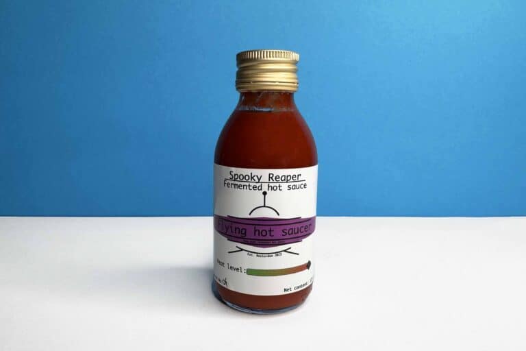 Ingrediënten: Alcoholazijn, water, Jalapeño, suiker, miso (soja), look, gerookte chipotle (2,93%), gerookt paprikapoeder, zout, zeewier (1%), gefermenteerd maismeel, limoen (0,5%), lijnzaadvezel.